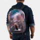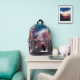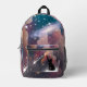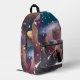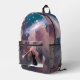 This outer space illustration seems a bit surreal with clouds in blue, pink, purple and yellow. A black cat sits on the moon gazing out at the stars with fascination as she reaches out to grab one in this funny feline cartoon that is sure to be appreciated by any black cat lover.