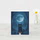 Personalize this blank greeting card with a cute black kitten sitting in the woods under a full moon with his little black kitty companion and a bright white crystal.
