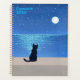 Black cat under full moon starry night planner
