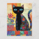 Black cat folk art, whimsical floral pattern, vibrant and decorative.