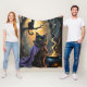 Black Cat Whimsical Halloween Painting Fleece Blanket