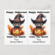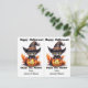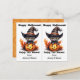 This cute Halloween postcard is designed to be easily cut into two cards. The image is of an adorable black kitten wearing a witch's hat and sitting on top of a grinning Jack o' Lantern. The black text above says "Happy Halloween", and below "Enjoy the Haunt" with your signature. Perfect for elementary or pre-school students to give to their friends at their school Halloween party, and economical, too! And teachers can also customize it to give out to students, too!