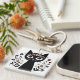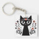 Black Cat with Big Eyes Surrounded by Flowers Keychain