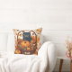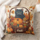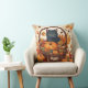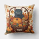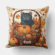 Black Cat with Fall Harvest Basket Brown Throw Pillow