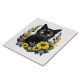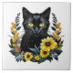 black cat with flowers tile