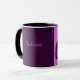 Black cat with fuchsia background mug