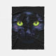 Black cat with green eyes fleece blanket