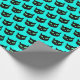Black cat with green eyes on turquoise blue Wrapping Paper