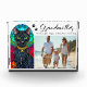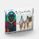 Beautiful vintage Black Cat Photo Block featuring family photo, text "Grandmother" with custom wishes and colourful mosaic stained glass background with black cat wearing golden collar + jingle bell. Elegant modern photo block for cat loving person, unique artistic decorative piece.