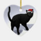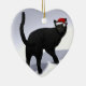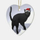 Black Cat with Santa Cap Ceramic Ornament