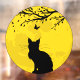My autumn setting with the silhouette of a Maine Coon cat watching a butterfly and falling leaves in front of a full yellow moon.