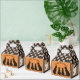 Traditional meets Gothic with this Halloween themed Favour Box. The four side panels have a traditional flair starting with the front and back. There's an orange background with the silhouette of four black cats. The text, which reads, TRICK OR TREAT, can be customized. On the two side panels there is a ghost on a brown background. The top half of the box has a dark brown and beige, diamond pattern with a gothic touch.
