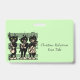 This name or identification badge is light green with three black cats with green eyes playing music with their instruments including a fiddle, guitar, and saxophone while standing on a sheet of black musical notes. Customize your name and information with the templates.