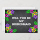 This is Black Board, Chalk Board Colourful Floral border would give elegant appearance in saying Will you be my Bridesmaid to your bride. This is best for the bride, who loves flowers and floral design. It is a truly fun way to Ask the special ladies in your life to stand along side you on your wedding with these pretty will you be my bridesmaid.