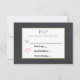 RSVP with a black chalkboard background and a cute pink heart. Simple, trendy and elegant. layered over top is a white frame with a gold border.