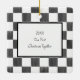 This Christmas ornament is ready to be customized with your own photo and your own custom caption. Your photo and caption are set inside of a black and white frame against a black and white checkerboard background. There's a spot to add an additional message on the reverse side. Nearly black squares with a painted look and plain white squares are arranged in an alternating pattern on the front and back of this ornament.