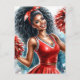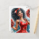 This postcard features watercolor artwork of a beautiful brown-skinned cheerleader in red cheer uniform with pompoms and a big, pretty smile!