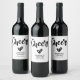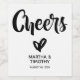 Label your wine in style with a trendy typography wine label. Modern and stylish, this custom design features the text "Cheers" in casual script lettering, a heart doodle, and editable text fields for the couple's names and date in black. Easily personalize this design to match your style by clicking "Customize" to go to the design tool and adding your own custom text or details.