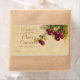A vintage style illustration of dark red cherries on a branch with green leaves, on a beige background with russet coloured text, made from an old painting. The label is set up for canning or bottling home made jams, jellies and preserves. You can leave the date space to write in, or change to the date your jam or jelly was made.