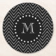 Black Chevron Pattern | Black Monogram Round Paper Coaster