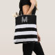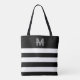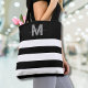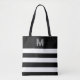 Black Chic Stripes Name Monogrammed Tote Bag
