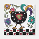 Cute black chicken magnet done in a folk art style with flowers and hearts.