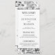 Elegant black and white Chinoiserie porcelain inspired floral pattern classical wedding program cards.