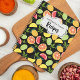 A personalized family name recipe book with citrus fruit pattern featuring colourful oranges, lemons, tangerines and grapefruit.