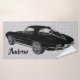 Black Classic Corvette Design Bath Towel with customizable text and background colour.