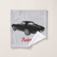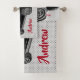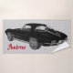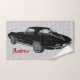 Black Classic Corvette Design Bath Towel Set with customizable text and background colour.