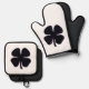 Black Clover oven mitts pot holders sets are for Irish, friends of Irish, Goths, cooks, chefs, and bakers on St. Patrick's Day or any day. Black Clover is Steamy Raimon original art.