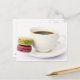 Black coffee in white cup with two french postcard