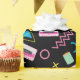 An eighties inspired retro pattern with colourful 80's geometric illustrations on a black background. Perfect design for anyone who loves nostalgic 80's look designs.