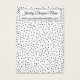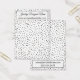 //Please note that the markers for your hole punches were rendered here in red to enable them to better show up over the background image. This layer can be removed or the colour change to any you prefer. // This simple, fun card features template space holders for adding your business contact details to both the front and back. I've used a pretty script font for your designer or business name, and a clean, sans-serif typeface for all other details. The background of the card was covered in a graphic depicting black confetti, allowing the editable white background colour to show through. A black-bordered rectangle overlays this graphic, setting off your text elements beautifully. Please don't hesitate to reach out if you need any customizing help.