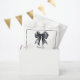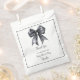 Pretty baby shower favour bag featuring a black coquette bow ribbon. The words can be changed to suit your own details or requirements