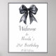 Pretty birthday party poster invitation featuring a black coquette bow ribbon. The words can be changed to suit your own details or requirements