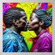 Personalized romantic flirty card. Pretty dreadlocks and colourful digital art with African-American couple kissing.