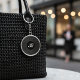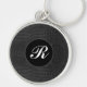 A sophisticated and trendy circle keychain featuring a realistic black crocodile leather print texture. The design is personalized with a stylish script initial monogram, which can be easily customized. This keychain is a fashionable and glam accessory for your keys, bag, or as a thoughtful, personalized gift that adds a touch of luxury to everyday life.