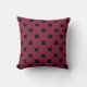 Black cross stitches on mulberry throw pillow