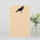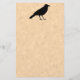 A black silhouette image of a crow bird, on a printed background that has a beige parchment pattern. The parchment look pattern is an image, a flat design, printed on the surface of the item.