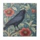 "classy classic art nouveau", "black carrion crow Bird", "sage green woodland animals", "william morris ceramic tile", "leafy dark navy blue raven", "stylish red forest tree leaves", "right facing vintage birds", "wildlife garden animal on branch", "nature floral flower botanical", "leaf flowers traditional antique"