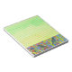 A colourful lined notepad for the autumn season featuring three crows perched in trees with fall leaves drawn in ink with watercolor on a chartreuse and lemon-lime watercolor wash background. Great for list, reminders and a nice thinking of you gift!