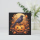 This card features a sinister looking black raven perched on a jack 'o lantern. Please feel free to edit the text to make this Halloween card personal and one of a kind.