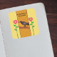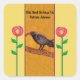 Black Crow on Branch Abstract Red Flowers Yellow Square Sticker
