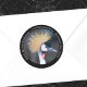 This black crowned crane has distinctive, stiff, golden feathers atop his head making this crane really stand out. Black background, with white, curved, editable, return address text.