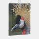 The elegant black crowned crane stands tall and proud, its striking silhouette adorned with intricate patterns of black and white feathers. Its blue eyes gleam with intelligence, reflecting its keen awareness. The crane's presence is a symbol of beauty and harmony in the natural world.