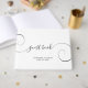 Create your own wedding guest book for the bride and groom with an elegant signature style "guest book" typography design with extra curly tails and job title.