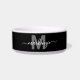 Create Your Own Personalized Black Monogram Pet Bowl. This stylish white pet bowl features a bold black band wrapped around the centre for a modern, monochrome look. A light grey initial sits behind a white script name, creating a clean black and white colour scheme. Designed to work for a dog, cat, or any beloved pet, this custom bowl adds a sleek, personalized touch to your pet’s space. All colours can be changed to match your pet’s style or your home decor!