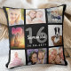 A unique gift for a girl's Sweet 16, 16th birthday, celebrating her life with a collage of 8 of your own photos, pictures. Personalize and add her name, age 16 and a date. A chic black background. Grey and white letters and numbers. The name is written with a modern hand lettered style script.