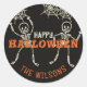 Halloween stickers featuring cute skeletons and spider web on black colour background. This design match with Halloween party supplies in this collection.